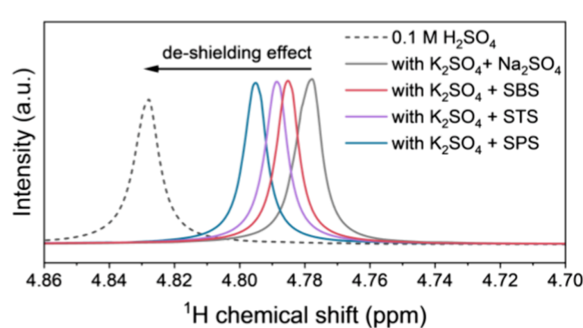 例如,在 SPS / 硫酸电解质体系中,NMR 检测显示,纯 H?SO?中水分子化学位移 δ?=4.824 ppm