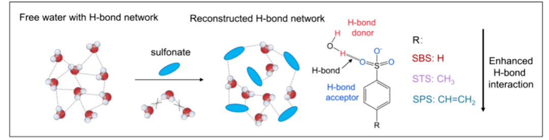 -SO??基团作为氢键受体与水分子形成强相互作用。DOI:10.1021/acscatal.4c02916