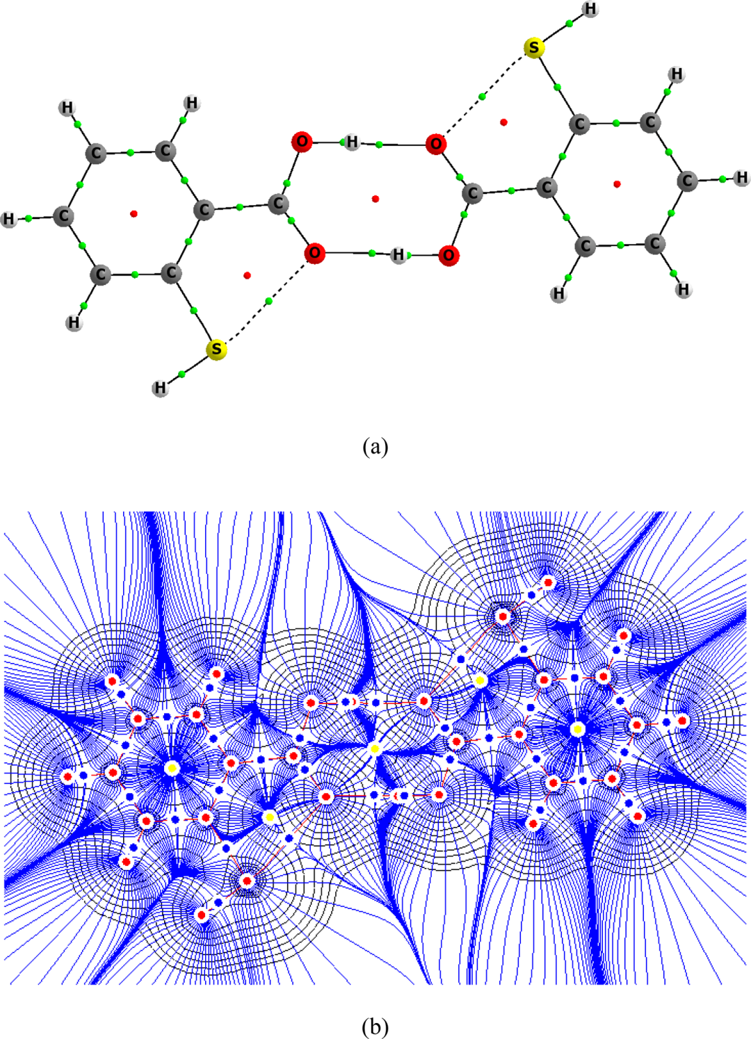 硫代水杨酸晶体结构片段。图中可见中心对称二聚体通过羧基形成双O-H···O氢键,同时存在S···O分子内硫属键构成五元环,S···O距离2.762 ?,小于范德华半径和3.25 ?。DOI:10.1021/acs.jpca.0c11183