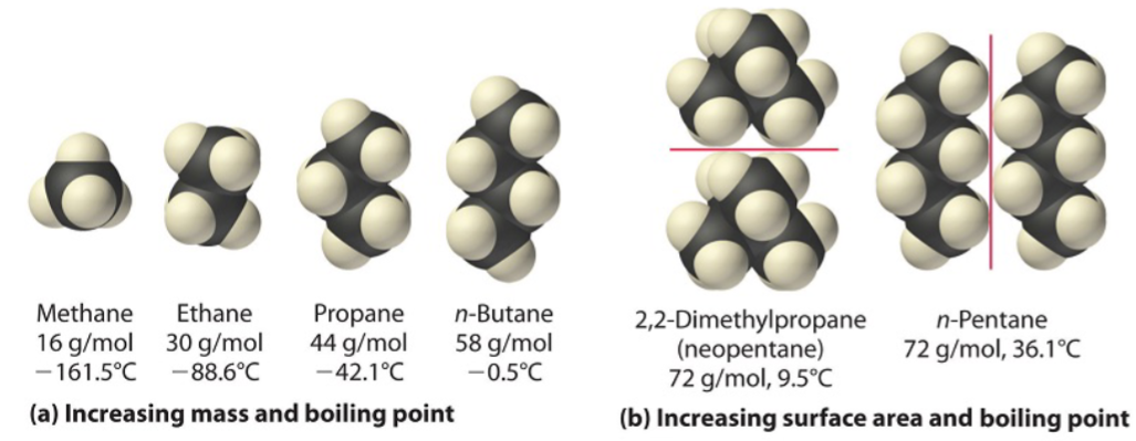 分子质量和表面积影响色散力的强度